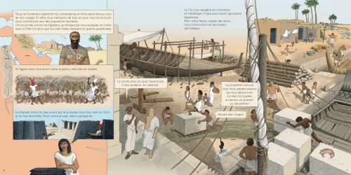 Cette forme, de frise historique, est un excellent moyen de se repérer dans une histoire mondiale de plusieurs milliers d’années. Les auteurs ont choisi de raconter l’Histoire des hommes à travers leur quotidien ( alimentation, maison, artisanat, agriculture, religion, urbanisme,commerce…). C’est peut-être ce qui donne à ce livre une résonance en chacun de nous.