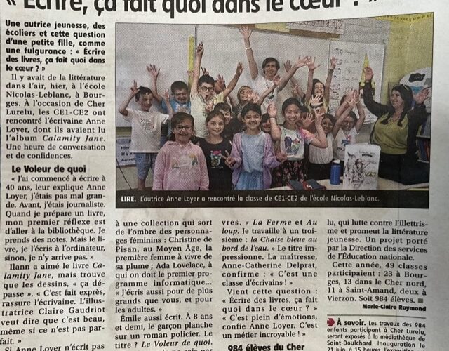 Grâce à la ligue de l’Enseignement du Cher, la ville de Bourges et la Communauté de Communes Berry Grand Sud, ces élèves ont pu bénéficier de rencontres-ateliers avec l’autrice de Calamity Jane, l’Indomptable.