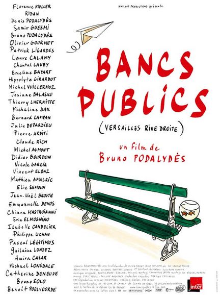 [dailymotion]http://www.dailymotion.com/video/x9kdmg_avantpremiere-bancs-publics-versail_shortfilms[/dailymotion]Immense coup de coeur pour le dernier film de Bruno Podalydès vu hier soir : « Bancs publics (Versailles Rive droite) » clôt  la trilogie versaillaise – sa ville natale – commencée en 1992 avec 1°) « Versailles rive gauche » puis 2°) « Dieu seul me voit (Versailles chantiers) », avec un joyeux film choral (le casting est impressionnant !) plein de fantaisie et de poésie à la Jacques Tati (la deuxième partie du film s’accélère brutalement et enchaîne catastrophe sur catastrophe dans le fameux magasin de bricolage « Brico Dream » dont les vendeurs sont d’improbables dilettantes aux airs de Gaston Lagaffe !)…