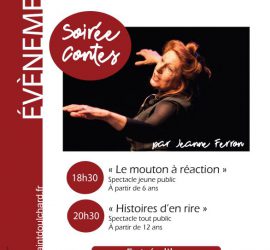 La conteuse Jeanne Ferron vient à la médiathèque vous conter deux histoires farfelues et humoristiques : 18h30 : Le mouton à réaction (spectacle jeune public). À partir de 6 ans. « Il était une fois un petit mouton… Petit mouton court, gambade, s’emmêle les crayons et tombe dans un trou pas très […]