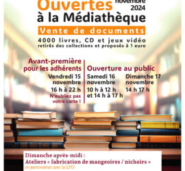 Vente de documents : 4000 livres, CD et jeux vidéo retirés des collections et proposés à 1€. A découvrir également : l’exposition « l’arbre fait le lien » par les classes élémentaires des trois groupes scolaires de Saint-Doulchard. Horaires et programme du week-end : Renseignements au 02 48 23 52 65 *les […]