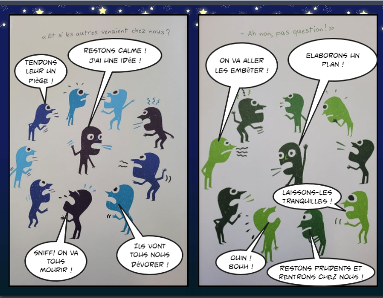 Cette année nous participons au projet Cherlurelu. Nous sommes allés à la bibliothèque de Saint-Amand-Montrond et les bibliothécaires nous ont présenté et lu des extraits des albums sélectionnés sur le thème du partage. A l’école, nous avons fait une lecture entière de chaque album et nous avons élu notre album coup de coeur:  » Un monde ». Nous avons imaginé les paroles des personnages du livre en exprimant leurs ressentis, émotions sous forme de bande dessinée (bulles de paroles, pensées…). Puis, nous avons résumé et imaginé une suite à cette histoire (intervention de nouveaux personnages, nouveau lieu, nouvelle péripétie…) et nous l’avons illustrée. Enfin, nous avons mis en page notre histoire sur ordinateur avec la découverte et l’utilisation du site « Bookcreator » .