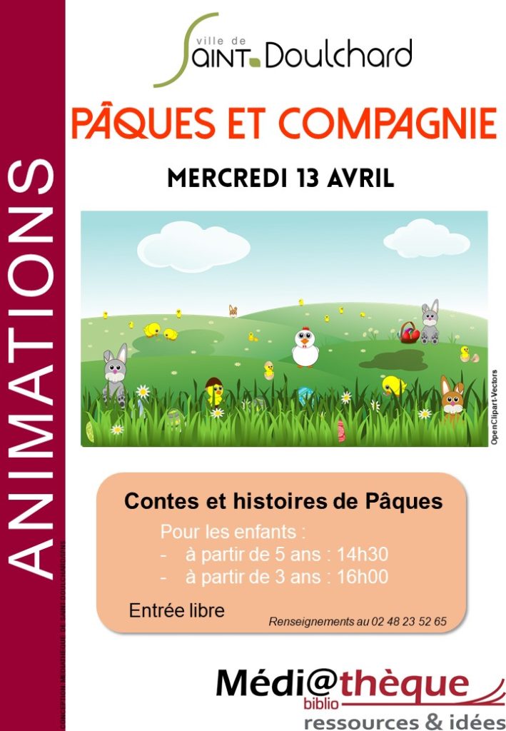 PaquesPublié 1 avril 2022 aux dimensions 720 × 1040 dans Animation Pâques et compagnie – Médiathèque de Saint Doulchard.. ← Précédent https://www.monchermedia.com/wp-content/uploads/2022/03/Paques-709x1024.jpg https://www.monchermedia.com/wp-content/uploads/2022/04/Paques-709x1024.jpg