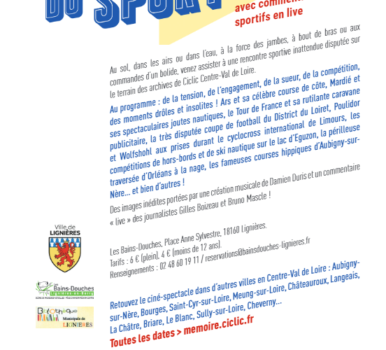 « Ciné-Spectacle : il va y avoir du sport » à Lignières7 juin 2024 dans Lire, voir, écouter, rencontrer étiqueté Ciclic / ciné spectacle / Les Bains Douches / Lignières / sports par Laurent Jenger Plus d’infos et bande-annonce : https://memoire.ciclic.fr/il-va-y-avoir-du-sport Share this… Facebook Twitter Linkedin Pinterest Copy