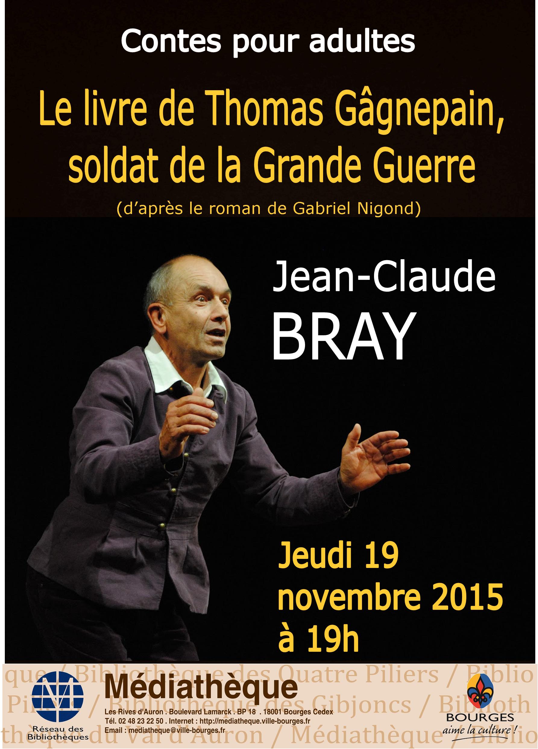 Jean-Claude Bray raconte « Le livre de Thomas Gâgnepain, soldat de la Grande Guerre », (d’après le roman de Gabriel Nigond)