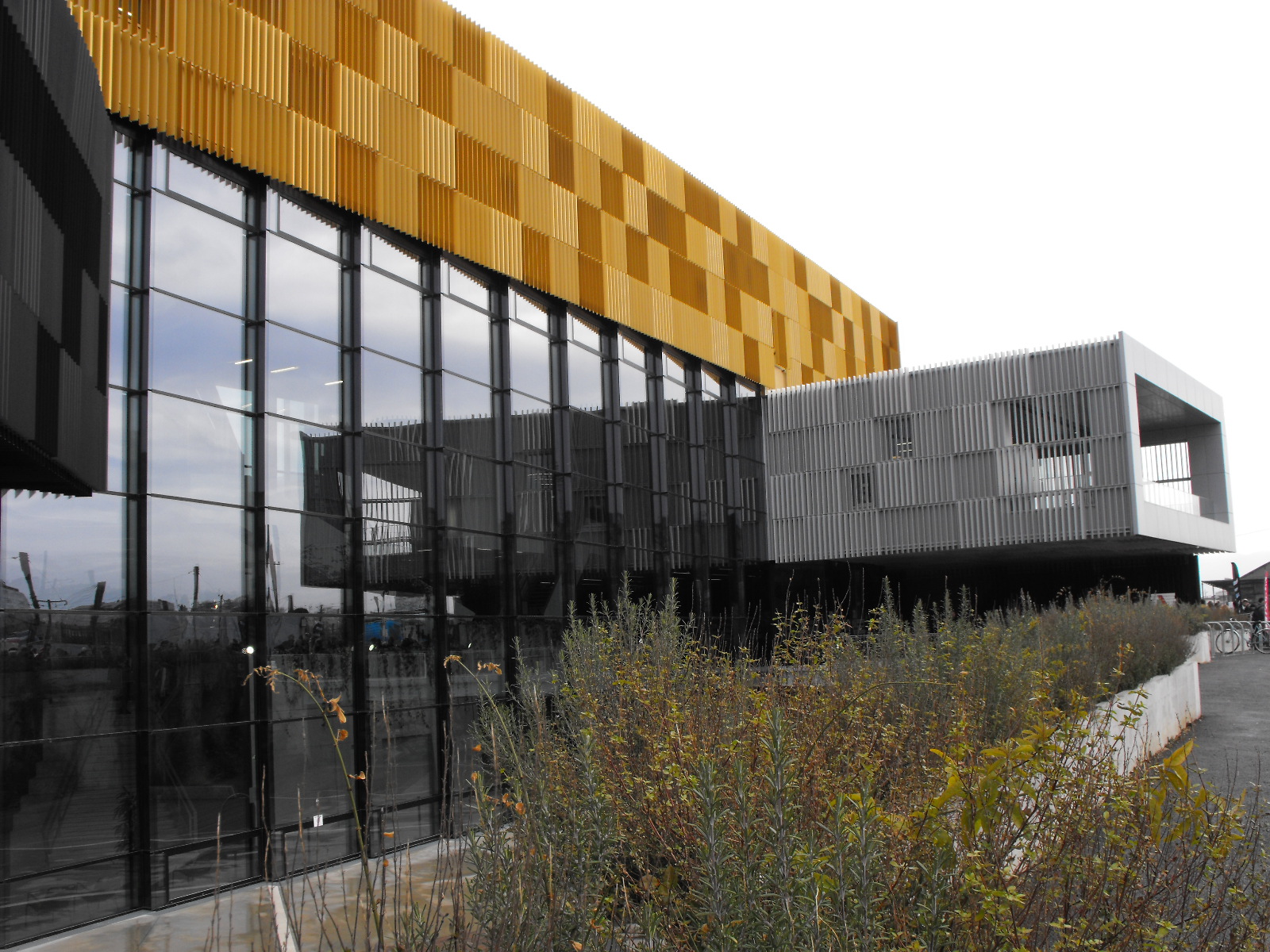 Le bâtiment de 5600 m2 est un saisissant empilement de cinq «boîtes» ou barres dû à l’architecte Françoise Raynaud (cabinet Loci Anima).