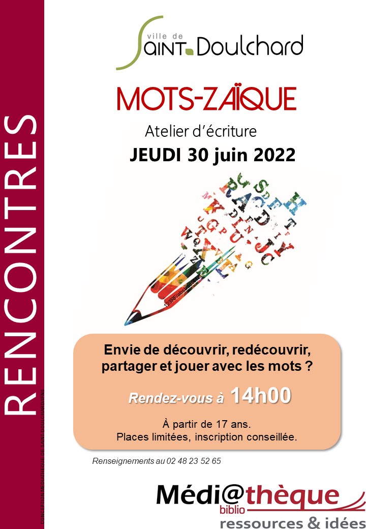 Comme tous les derniers jeudi du mois, notre fameux atelier d’écriture aura bien lieu.