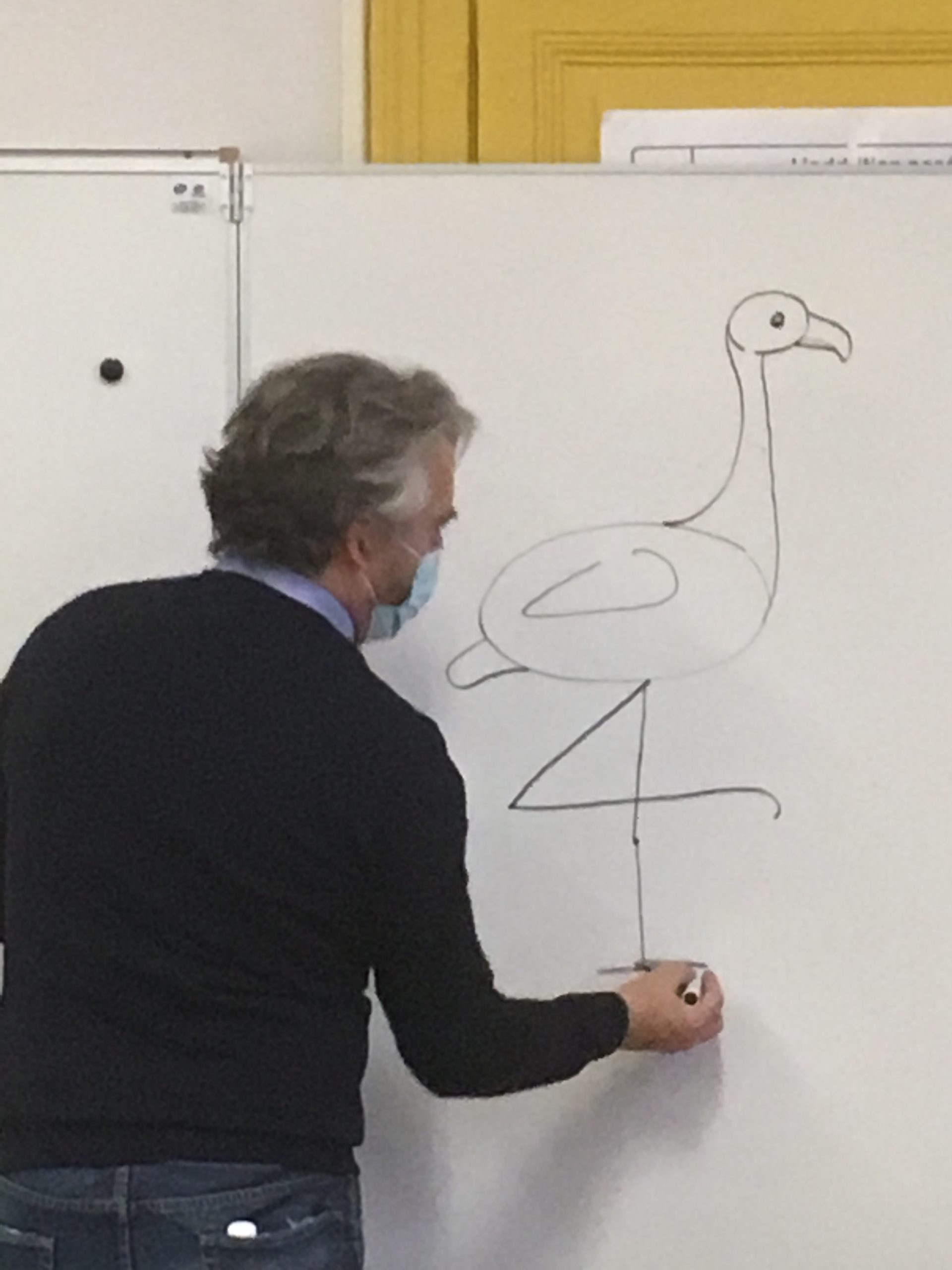 Avant de partir, il nous a fait un dessin pour la classe, avec des rhinocéros.