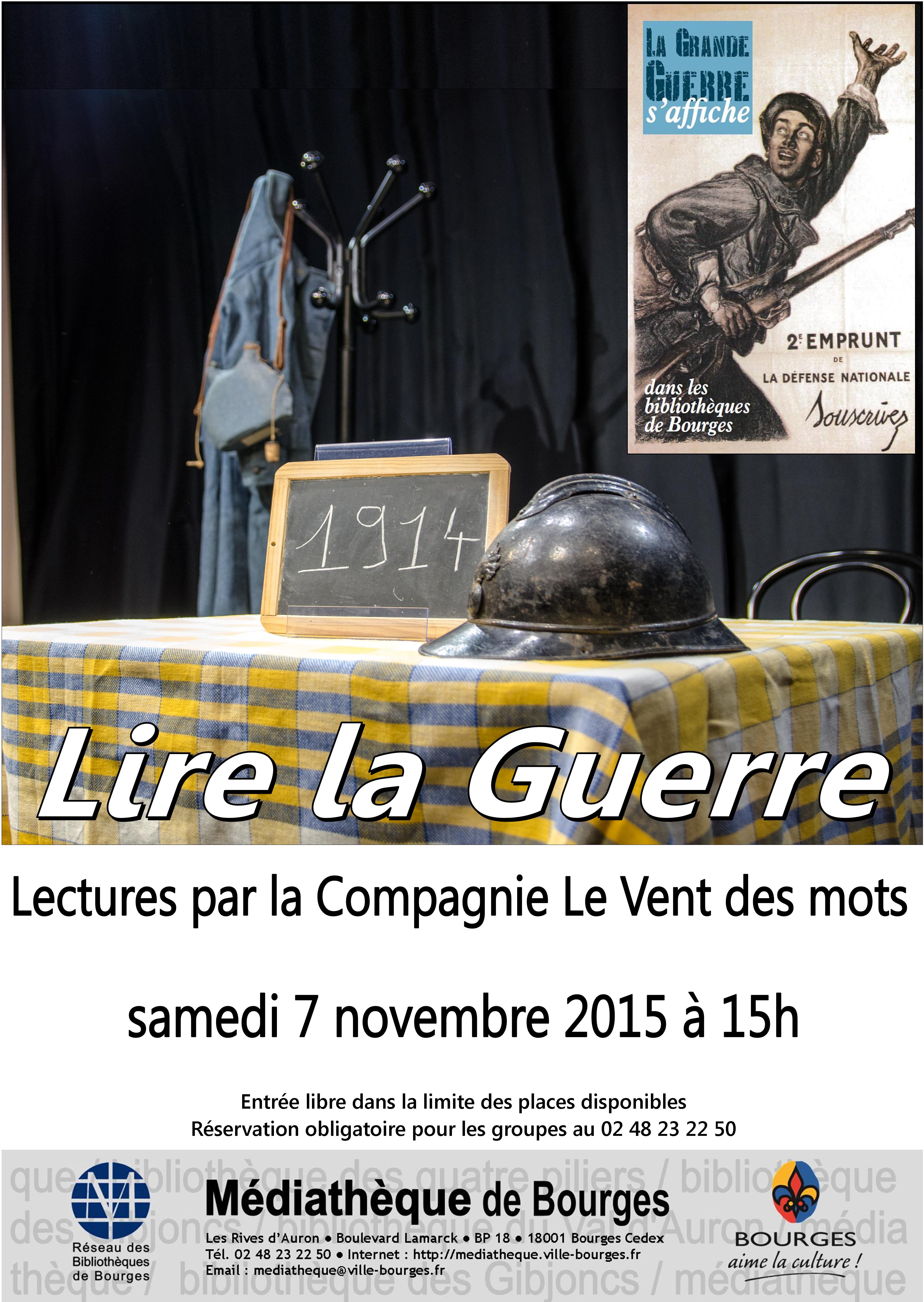 Dans le cadre des commémorations du centenaire de la Guerre 14-18, la Compagnie du Vent des mots propose une lecture de correspondances et de textes journalistiques sur cette sombre période de notre histoire.