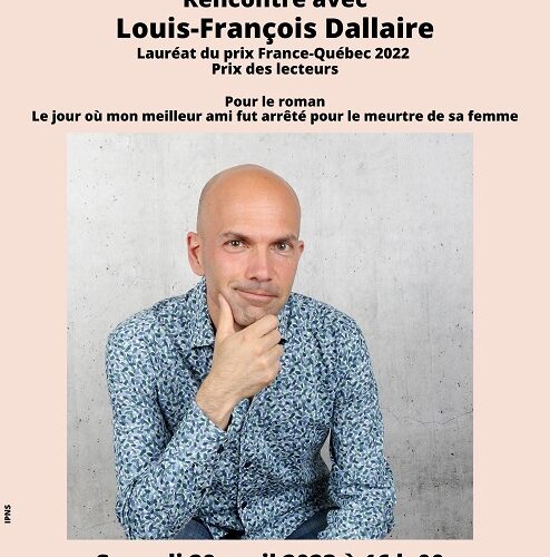 Dans le cadre de sa participation au prix littéraire France-Québec prix des lecteurs, la bibliothèque municipale a l’honneur de recevoir Louis-François Dallaire, le samedi 29 avril 2023 à 16 h 00.