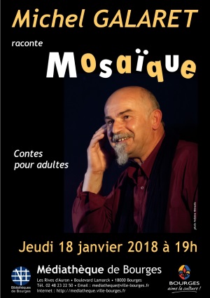 Des histoires tirées du sac du conteur, Michel Galaret, au gré de son humeur et de celle du public, pour vous emmener dans d’autres contrées, dans d’autres mondes ou peut-être tout simplement au plus profond de vous-même. Bon voyage !